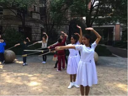 "Chinese culture lesson" had 15 projects, divided into three different categories: 1)Art lessons included Calligraphy, Paper cutting, Porcelain pottery, Chinese Tie Dye, Peking Opera Face Painting and Moon Shaped Fan Craft; 2)MaritalArt lessons included Tai Chi and Chinese Boxing, etc.; 3) Chinese traditional game lessons covered Hoop Rolling, Stilt Walking.