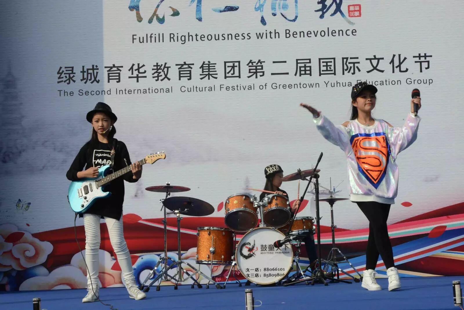 With the music “WAKAWAKA”, the strawberry cake band from Greentown Yuhua Primary School started the opening show. After that, students from other Greentown Yuhua schools and the CIS Hangzhou, brought us brilliant performances, including ballet, traditional art show, football performance , Chinese martial art and so on.